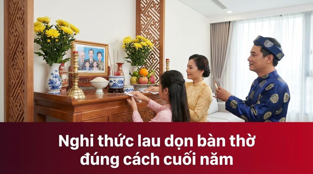 Hướng dẫn chi tiết nghi thức lau dọn bàn thờ cuối năm cho căn hộ chung cư Lau dọn bàn thờ (hay bao sái bàn thờ) là nghi thức thiêng liêng quan trọng cuối năm theo phong tục Việt Nam, đặc biệt ý nghĩa đối với các gia đình sinh sống trong căn hộ chung […]