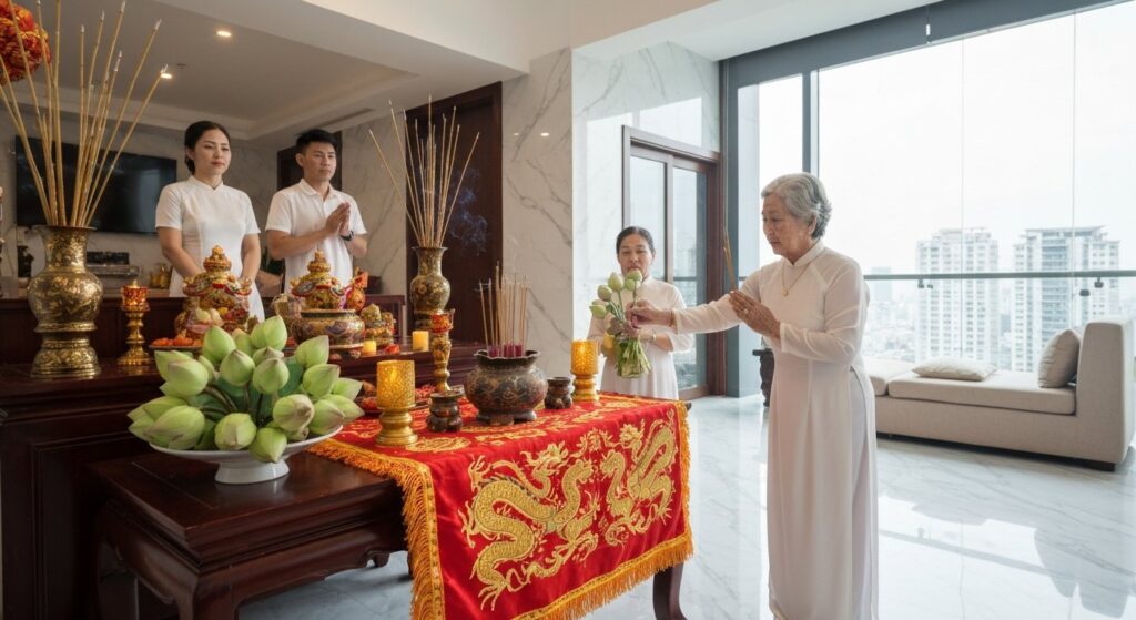 Hướng dẫn đầy đủ nghi lễ thờ cúng người vừa qua đời trong không gian chung cư hiện đại Việc đưa người mới mất lên bàn thờ là một trong những nghi lễ thiêng liêng nhất trong văn hóa thờ cúng Việt Nam, thể hiện lòng hiếu thảo và tình yêu thương của con cháu […]